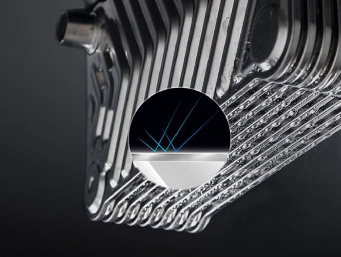 为此,庆东365完美体育团队总结经验,逆向思考,通过两项创新设计攻克了这一痛点。第一个设计是“同向”技术:通过独特的燃烧器设计使火焰向下燃烧,冷凝换热器下置。热量沿着燃烧器——主热交换器——潜热交换器能够自上而下依次传递,烟气也自上向下流动;第二个设计是”顺流“,冷凝换热器采用下置结构,自上而下的烟气经过冷凝换热器完成二次换热时,产生的冷凝水自然流动,将冷凝换热器进行冲刷清洗,最终排出。这两项技术创新,使得冷凝壁挂炉从此舍弃了加冷凝包和频繁保养机芯的困扰,大大降低了使用和维护成本,给予用户更好的使用体验。