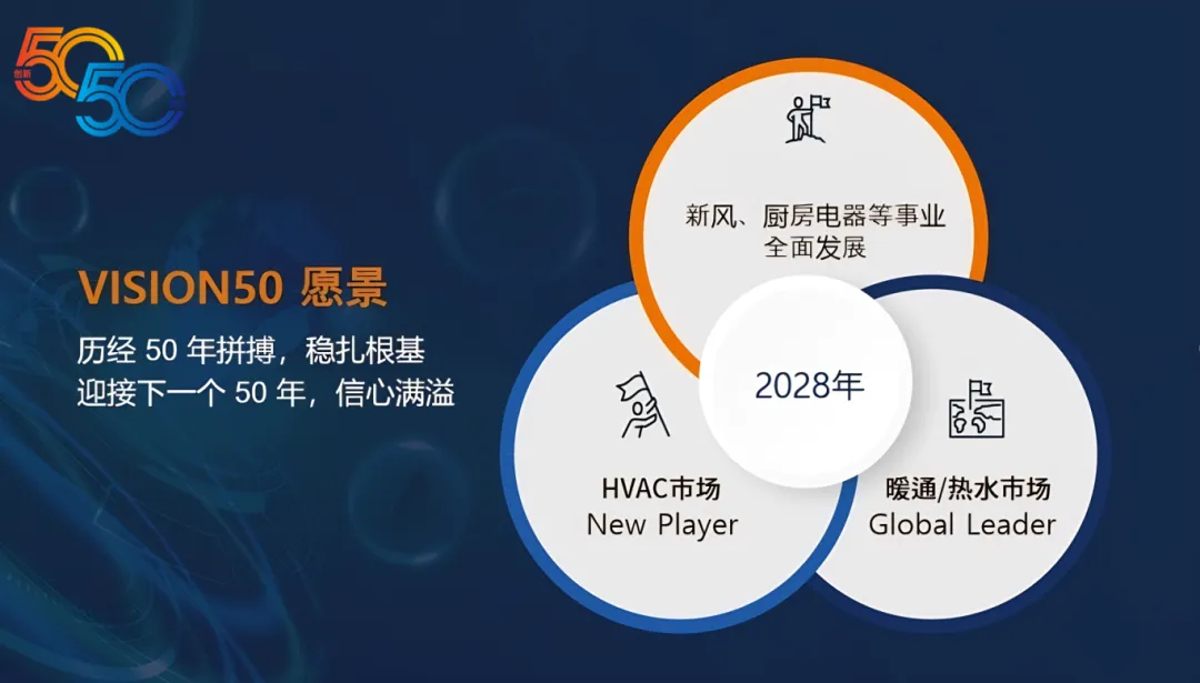 如今的庆东365完美体育,不再只是一家热能设备制造商,而是拥有完整研发、制造、供应与服务体系的综合型能源企业。面向下一个50年,庆东365完美体育提出了“VISION50-50”战略构想——既是对前50年高质量成长的总结,也是对后50年绿色、低碳、智能发展的展望。