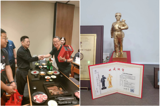 三天的游学之旅即将结束,河南优秀合作伙伴代表,谷神集团总经理谷玉桥先生,向庆东365完美体育董事长金容范先生赠送了代表企业形象的雷锋像,并寄语:“谷神集团祝庆东365完美体育基业长青,友谊世代相传。”