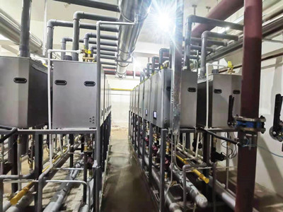 锅炉房面积约为130㎡,40台NFB-98HC平均分为两组,每组并联后管道接入系统板式换热器的一次循环接口,经过换热后供至系统二次侧,通过系统循环泵给予动力,供应到采暖末端设备实现供暖。NFB-98HC机体模块化设计,安装简便,并联设置极大节约机房空间,增减设备十分方便,非常适用供热要求严苛的现场。